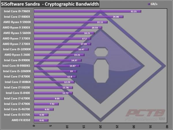 AMD’s Ryzen 9 5900X offers a 34% lead in cryptographic bandwidth over Intel and even a 10% lead over last generations 3900X