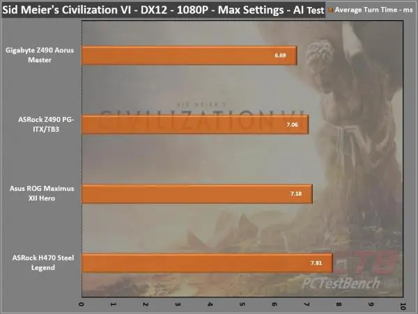 ASRock’s H470 Steel Legend does well in our first game benchmark coming in just a fraction of a millisecond slower than Z490 boards.