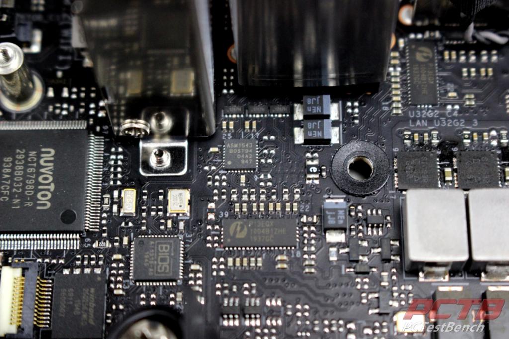 An ASMedia ASM1543 handles the channel switching required for the USB Type-C on the back panel I/O. A Few Pericom P13EQX redrivers help the rear USB 3.1 ports provide a strong signal.