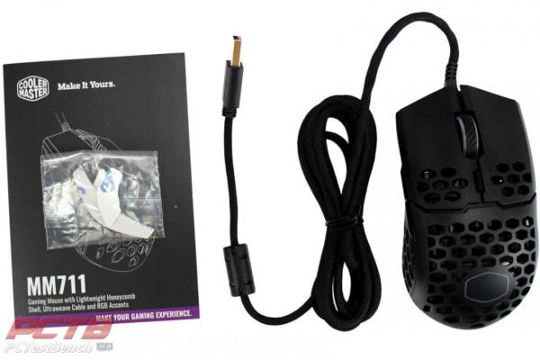 Cooler Master’s MM711 mouse comes in a small box showing the mouse in full color and near real size.