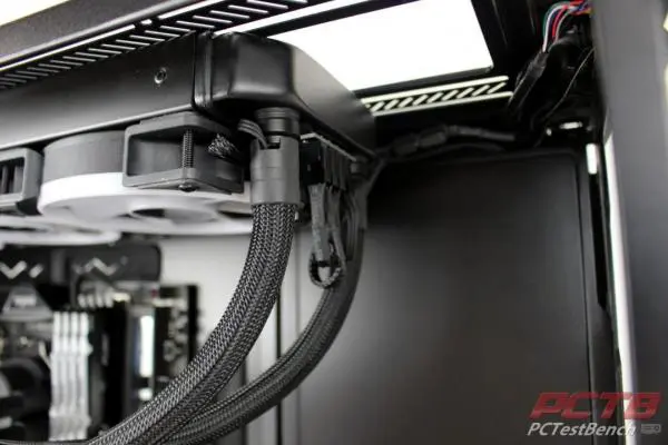 There are two settings for the cooler that you can select by twisting the face of the CPU block. Auto will control the fans and pump by the temperature sensed by the block, while PWM will allow your motherboard to control it like any other cooler. We’ll test both. Under power, the selected setting will glow white for a few moments before fading out.