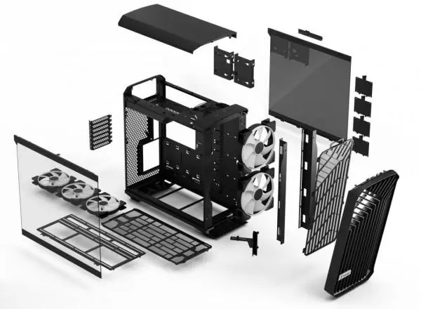Computers have gotten powerful at a rapid pace with today’s high-end desktop machines quite literally eclipsing early, data center-sized supercomputers in raw processing power. The core counts we have available today in a desktop required a multi-socket rack-mount server only a few years ago. The one downside to this meteoric rise in power is a rise in heat output. Granted, efficiency has increased to high levels across the board, but a beefy machine can still pump out hundreds to well over a thousand watts of heat when under full load. No matter your cooling solution, water, air, or something exotic, they all have one thing in common: The need for airflow. Unfortunately, the trend has been to prioritize glass and raw aesthetics over performance in the case world and that can make things difficult for cooling. Fractal Design has flipped this paradigm on its head with the new Torrent Chassis. Designed entirely with airflow in mind and then polished off in the usual Fractal fashion, the Torrent is more than ready for your most powerful build with the heaviest cooling needs. Out of the box, you get a pair of massive new Dynamic X2 180mmx 38mm fans delivering more than 150 CFM each at a silent 1200 RPM, and a trio of matching 140mm fans bulldoze another 315CFM through the case at the same time. You added that upright, that’s more than 600 CFM of cooling power at your fingertips without adding a single fan. How cool is that? Let’s find out!