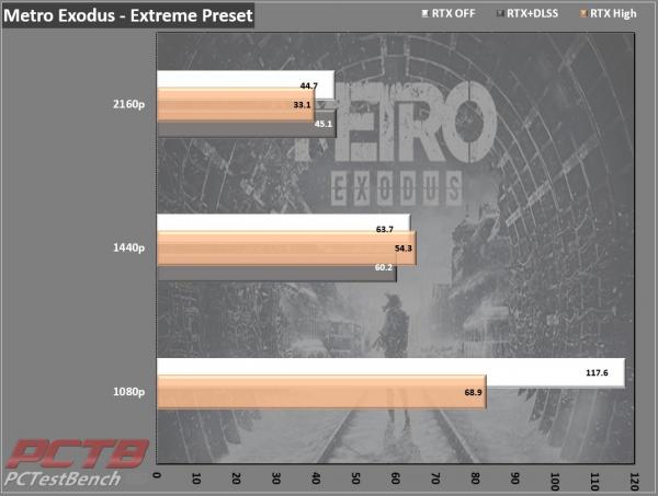 Fully maxed out in the Extreme preset, MSI’s 3070 Ti SUPRIM just breaks the 60 FPS mark on average with RTX and DLSS enabled at 1440p. 4K is still extremely brutal at this level, but we see an average of 45.1 FPS.