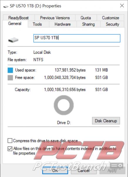 Initialized as GPT and formatted as NTFS in windows, we get a useable space of 931GB.