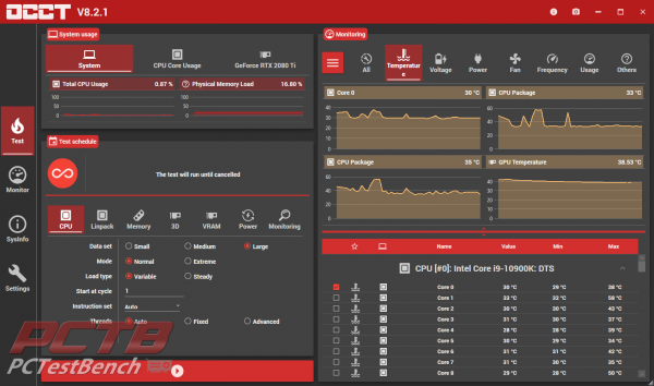 Testing was conducted at an ambient temperature of 22C or 72F. Testing is half an hour of an OCCT stress test, and the temperature is logged with HWiNFO.